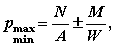 где N суммарная вертикальная нагрузка на основание включая вес фундамента и грунта на его обрезах; А площадь подошвы фундамента; W момент сопротивления площади подошвы фундамента.