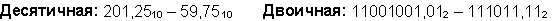 Ответ: 201,2510 - 59,7510 = 141,510 = 10001101,12 = 215,48 = 8D,816.