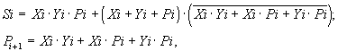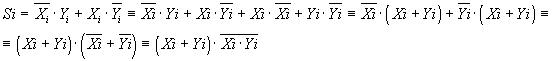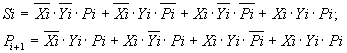 В таблице приведена логика работы сумматора на два входа X i и Yi. На его выходах образуется сумма Si данного разряда и осуществляется перенос Рi+1 в следующий старший разряд. По таблице можно составить логическое выражение для суммы Si и переноса Р i+1: