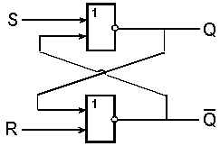 На каждый из двух входов S и R могут подаваться входные сигналы в виде кратковременных импульсов (