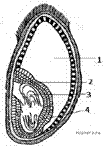 2. Цифрами 2, 3, 4 обозначены соответственно 2 — семядоля, 3 — зародышевый стебелёк и 4 — зародышевый корешок.