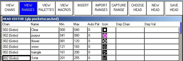 Допустим, у нас есть в сканере 6 масок, каждая маска сменяется на определенном уровне DMX в канале. Тогда диапазоны для масок будут выглядеть так: