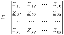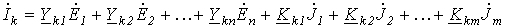 - комплекс входной проводимости k – й ветви, численно равный отношению тока к ЭДС в этой ветви при равных нулю ЭДС в остальных ветвях;