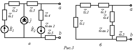 Таким образом, в соответствии с данной теоремой схему на рис. 2,а, где относительно ветви, ток в которой требуется определить, выделен активный двухполюсник А со структурой любой степени сложности, можно трансформировать в схему на рис. 2,б.