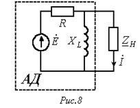В соответствии с теоремой об активном двухполюснике обведенная пунктиром на рис. 8 часть схемы заменяется эквивалентным генератором с параметрами