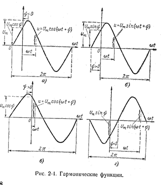 Начальная фаза φ представляет алгебраическую величину. На рис. 2-1, а и г угол φ отрицателен. На рис. 2-1, б и в угол φ положителен.
