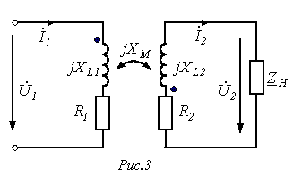 Катушки можно включить так, что ЭДС самоиндукции будет суммироваться с ЭДС взаимоиндукции; при переключении одной из катушек ЭДС взаимоиндукции будет вычитаться из ЭДС самоиндукции. Один из зажимов каждой катушки на схеме помечают, например точкой или звездочкой. Этот знак означает, что при увеличении, например, тока в первой катушке, протекающего от точки, во второй катушке индуцируется ЭДС взаимоиндукции, действующая от другого конца к точке. Различают согласное и встречное включения катушек. При согласном включении токи в катушках одинаково ориентированы по отношению к их одноименным зажимам. При этом ЭДС само- и взаимоиндукции складываются – случай, показанный на рис. 2. При встречном включении катушек токи ориентированы относительно одноименных зажимов различно. В этом случае ЭДС само- и взаимоиндукции вычитаются. Таким образом, тип включения катушек (согласное или встречное) определяются совместно способом намотки катушек и направлении токов в них.