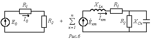 (при расчете спектр рассматриваемых гармоник ограничивается) в расчетном плане представляется суммой цепей на рис. 6.