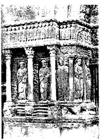 Строение романского стиля производило впечатление крепко стоящего на земле сооружения, несмотря на то, что многие храмы имели два или даже три яруса, в которых ритмически повторялся мотив арки. Геометрия храма была простой и ясной, являя взору прихожан величие и гармонию, понятный любому мирянину образ мироздания. Рельефы и росписи храмов должны были воспитывать прихожан, напоминать им главную идею религии: идею греховности всего земного и Страшного суда как воздаяния каждому по делам его. Но в своей экзальтированной вере, окрашенной не исчезнувшими языческими представлениями, художники и скульпторы заселяли и земной, и потусторонний мир сказочными и мифологическими существами. Бернард Клервосский писал об одном из таких рельефов: “Ты можешь увидеть здесь множество тел с одной головой и, наоборот, на одном теле множество голов. Здесь перед глазами находится четвероногое со змеиным хвостом, там — рыба с головой четвероногого. Тут зверь влачит зад козы, являясь спереди лошадью, там рогатое животное оканчивается конем.... Ты пожелаешь скорее читать по камню, нежели в книгах, и провести целый день в любовании этими диковинами, чем в размышлении над божественным законом” [340, ч. 1, с. 311].