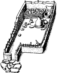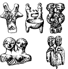 Долгое время у славян не было храмов и жрецов. Исследователь древней русской мифологии А. Кайсаров (1782—1813) пишет: “Обыкновение боготворить идолов в густоте лесов было так употребительно у славян, что даже когда их боги получили храмы, то они по большей части все еще воздвигаемы были в лесах... Первые храмы были только места, окруженные кольями, потом четыре столба накрылись кровлею и со всех сторон окружились завесами; наконец стали строить храмы из одного дерева” [199, с. 32]. Изображения богов — “идолы” — стояли под открытым небом, где совершались обряды и приносились требы (жертвы). Так, в Киеве на холме стоял идол Перуна, перед которым Игорь в 945 году приносил клятву в соблюдении заключенного с греками договора. Владимир около 980 года поставил еще идолы Перуна, Хорса, Дажбога, Стрибога и других богов, которым князь и народ приносили жертвы. Летописец Нестор (XI — нач. XII века) описывает истукан Перуна, сооруженный Владимиром: он был сделан из дерева, голова — из серебра, а борода — из золота. Другие летописи гласят, что ноги его были железные, а в одной руке он держал изображение молнии, украшенной драгоценными камнями.