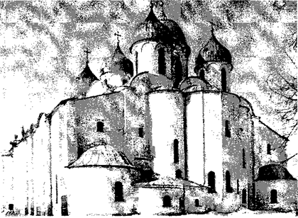 Вершиной храмового строительства Древней Руси было сооружение храмов в честь святой Софии. Такие храмы были сооружены в Киеве — пятинефный тринадцатикупольный храм и в Новгороде — более строгой и лаконичной формы. Так оформляются два направления в храмовом зодчестве: идущий от киевской традиции многоступенчатый и многоглавый облик храма и новгородский стиль — строгий, массивный, четко очерчивающий в пространстве свои формы. Эти особые традиции русского зодчества выработались уже к XI веку и надолго сохранились в архитектуре, несмотря на то, что свой вклад в развитие зодчества внесли псковские, владимирские, суздальские мастера. С развитием храмового строительства связано и появление новых видов изобразительного искусства — фресок, мозаичных работ и особенно иконописи. Эти виды искусства также пришли на Русь из Византии, хотя техника фрески и мозаики в мире была известна давно. Имеются сведения и об одном из первых иконописцев XI века по имени Алимпий, который обучался иконописанию у греков, хотя работы этого периода также не сохранились.