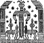 Кроме природных божеств, а также Рода и Рожаниц, был Дид — прародитель, “хранитель рода и прежде всего детей”... Для тех, кто считали, что ведут свой род от Перуна... это еще и синоним Перуна” К таким божествам относили и женские божества — Золотую Бабу, Мокошь — покровительницу домашнего изобилия и женских рукоделий. Богиню Мокошь воспринимали как “мать счастья”, рисовали “пряхой, вмешивающейся в женские работы, тайком стригущей овец, запрещающей прядение в праздничные дни” [там же, с. 15,187].