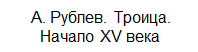 Еще одно явление русской культуры этого времени не имеет себе аналога в мировой культуре: это работы великих художников того времени Андрея Рублева (ок. 1360/1370—1430) и Феофана Грека (ок. 1340—после 1405). Отойдя от принятого стиля иконописания по прорисям, связанным с жесткими канонами, они обрели свой стиль, их цветовая гамма, рисунок и глубина чувств в полной мере отражены в росписях Благовещенского собора в Москве и других работах. Самое совершенное произведение Андрея Рублева “Троица” включила в себя всю глубину христианской символики и такую же глубину психологии христианского умиротворения, глубокомысленной тишины молчания, при которой происходит таинство общения душ.