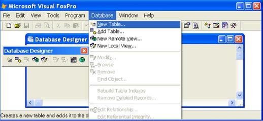 Рис. 1.5. Работа в главном меню Visual FoxPro 9.0 с базой данных