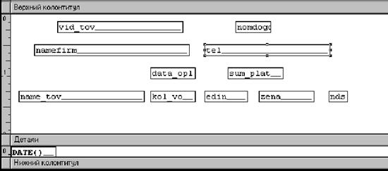 Поля в области Детали можно расположить произвольным образом (рис. 2.6), установив указатель мыши на нужном поле и, зафиксировав левую клавишу мыши, переместить его в другое место области.