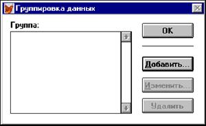 Список групп пока пуст. Определение новой группе дается щелчком на командной кнопке Добавить.... После чего появляется следующее диалоговое окно с именем Группа данных (рис. 7.10).