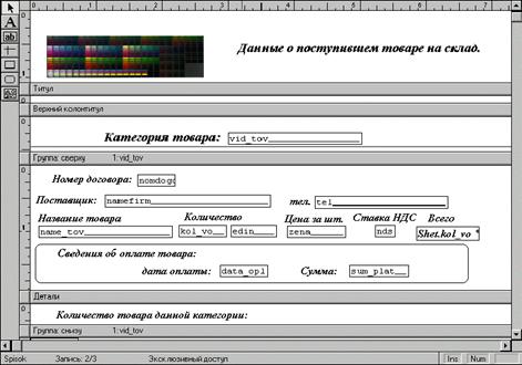 В данном отчете можно сделать еще одно вычисляемое поле, которое будет рассчитывать общее количество товара данной категории и выводить результат в конце каждой группы (рис. 2.18).