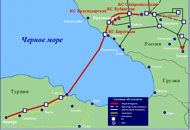 В настоящее время российский газ поставляется в Болгарию, Боснию, Венгрию, Грецию, Германию, Австрию, Италию, Румынию, Словению, Турцию, Финляндию, Францию, Хорватию, Швейцарию, Чехию, Словакию, страны Балтии, Польшу, Грузию, Белоруссию, Казахстан, Молдавию, Украину и др.