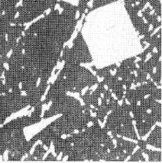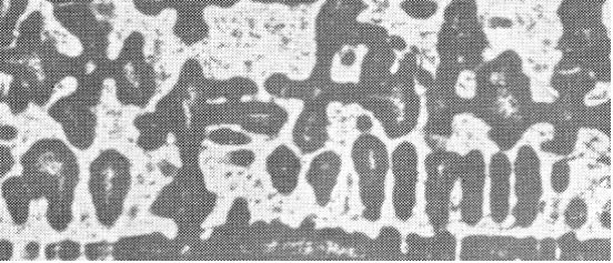 Структура оловянистого баббита Б83 состоит из твердого раствора сурьмы и меди в олове и хим. соединений. В травленом шлифе твердый раствор имеет темный фон, хим. соединение CbSn – вид крупных светлых кристаллов и хим. соединение Cu3Sn – вид мелких светлых кристаллов. Б83 является более качественным баббитом и применяется для заливки подшипников валов, работающих при скоростях вращения.