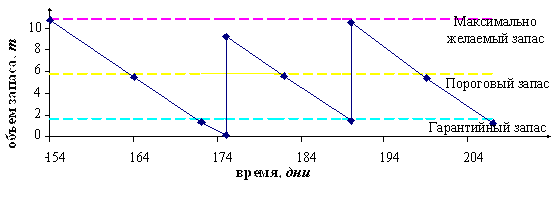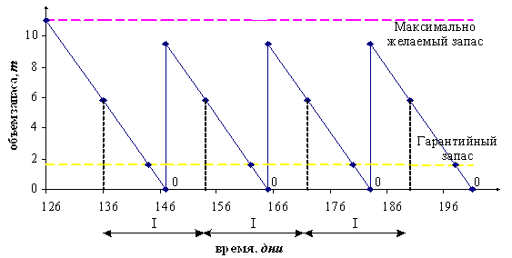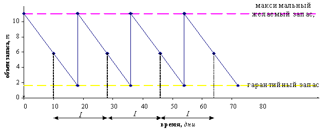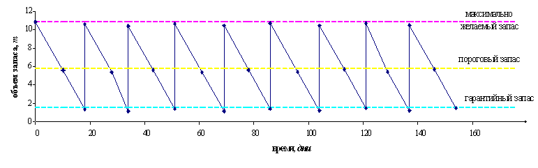 x при снижении размера запаса на складе до определенного уровня подается заказ на постановку или на производство новой партии требуемой продукции