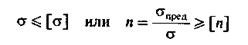 ] — допускаемое напряжение, т.е. такое напряжение, при котором обеспечивается безопасная работа конструкции. Допускаемое напряжение равно предельному, деленному на нормативный коэффициент запаса: