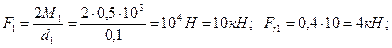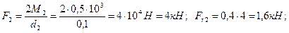 При равномерном вращении вала M1 = М2, где M1 и М2 - скручивающие пары, которые добавляются при переносе сил F1 и F2 на ось вала.