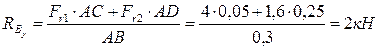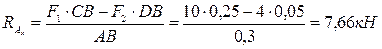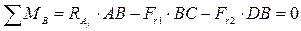 åМА = Fr1×AC + Fr2×AD - RB×AB = 0