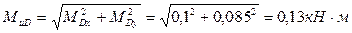 7. Вычисляем наибольшее значение эквивалентного момента по заданным гипотезам прочности. Так как в данном примере значение суммарного изгибающего момента в сечении С больше, чем в сечении D,