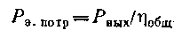 После вычисления мощности Рвых (Вт) определяют потребную мощность электродвигателя