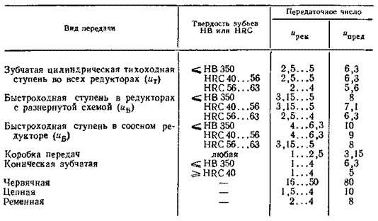 Рекомендуемые значения передаточных чисел и1, u2 ..., принимают из табл. 3.