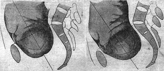 Рис. 6 Синклитическое вставление Рис. 7 Передний асинклитизм