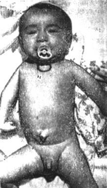 Клиника: шея у таких детей кажется очень короткой, голова как бы вставлена в плечи, это приводит к большому числу поперечных складок