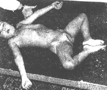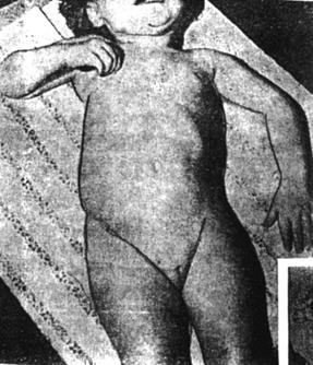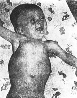 Рис. 27Б Колобкообразная форма грудной клетки (в сочетании с верхним вялым парапарезом и кривошеей) у ребёнка с катальной травмой шейного отдела спинного мозга