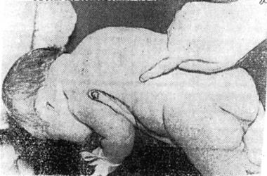 Суть: В ответ на поглаживание пальцем позвоночника от копчика до шеи, у ребенка возникает кратковременная апное, резкий крик, лордоз, разгибание рук и ног в сочетании с разгибанием головы, выпячиванием ануса и мочеиспускания. Обычно хорошо выражен в течение 1 месяца.