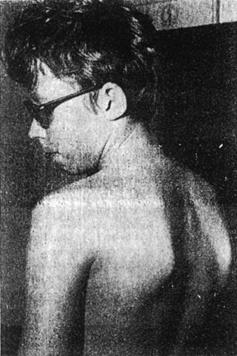 Рис. 32А Симптом подключичной ямки справа Рис.32Б Симптом «крыловидных» лопаток