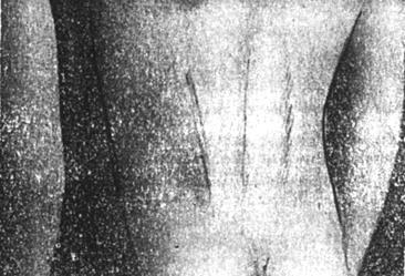 Рис. 33А Поясничный гиперлордоз Рис. 33Б Дефанс паравертебральных мышц