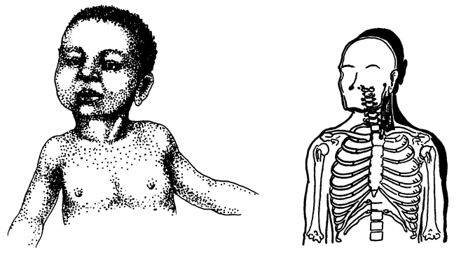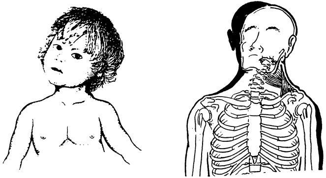 Рис 64. Визуальные критерии укорочения грудино-ключично-сосцевидных мышц.