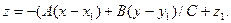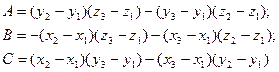 Раскрывая определитель, получим коэффициенты уравнения плоскости.