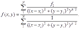 Для построения гладкой поверхности можно использовать метод взвешенной интерполяции по ближайшему соседу, аналогичный методу интерполяции Гаусса (при р = 2 формулы совпадают).