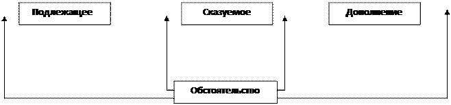 Синтаксическая функция слов в значительной мере определяется их словорасположением. Порядок слов в английском предложении может быть представлен схемой, из которой видно, что подлежащее, сказуемое и дополнение располагаются в строго фиксированной последовательности относительно друг друга.