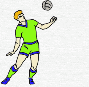 1. Подвесьте мяч к планке ворот (к баскетбольному кольцу, на дереро) так, чтобы он находился на 10 — 15 см выше головы. Выполняйте удары лбом в прыжке по подвешенному мячу. После 10 ударов уступите место партнеру, затем снова повторите упражнение.