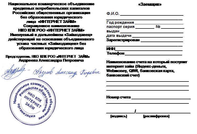 Приложение № 2 к Договору Займа НКО КПК РОО «ИНТЕРНЕТ ЗАЙМ»