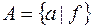 . Если нужно символически записать фразу «множество A состоит из элементов a, обладающих свойством f», то принято писать:
