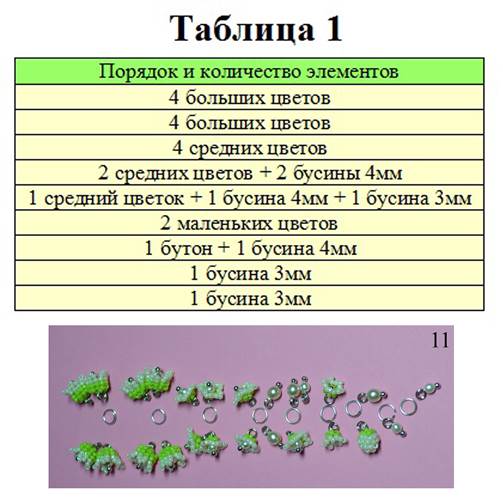 11. Переходим к заключительному этапу — сборке серёжек. Схема сборки серьги приведена в таблице 1.