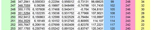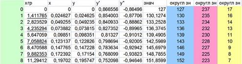 На рисунке 3.10 показаны начало и конец таблицы данных для синусоид.
