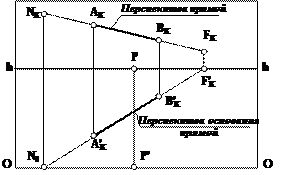 2. Из точки пересечения восставить перпендикуляр до пересечения с продолжением перспективы прямой. Получим точку NK – след прямой.