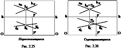 Если две прямые имеют общую точку – точку пересечения, то точки пересечения их перспектив и перспектив оснований на картине должны лежать на одном перпендикуляре к линии горизонта (рис. 2.25).