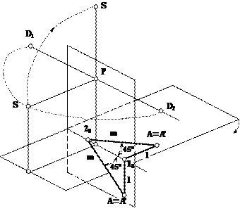 При этом предметную плоскость поворачивают вокруг основания картины так, чтобы часть предметной плоскости, принадлежащая предметному пространству, совместилась с картиной ниже основания картины.