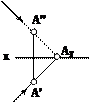 1. Через проекции А' и А'' провести соответственные проекции светового луча.