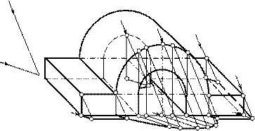 2. Определить на этой линии единственную точку, принадлежащую световому лучу. Эта точка и будет определять положение искомой тени (рис. 9.21).